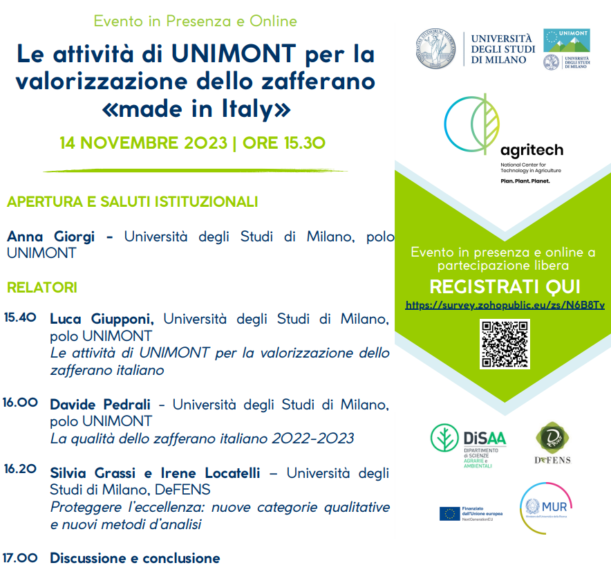 14 Novembre 2023: Le attività di UNIMONT per la valorizzazione dello zafferano “made in Italy” Leggi Tutto » 09/11/2023