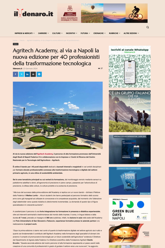 “Dopo la prima edizione ci siamo resi conto di quanto la trasformazione digitale nel settore agricolo sia in atto e quanto sia fondamentale il contributo dell’Agritech Academy nella formazione degli specialisti di domani che avranno il compito di promuovere le tecnologie per un futuro sostenibile dell’agricoltura” evidenzia il Direttore del Dipartimento di Agraria della Federico II e Direttore scientifico della Fondazione Agritech Danilo Ercolini. “Questa seconda edizione del nostro percorso di alta formazione rappresenta un passo avanti nella creazione di una comunità di professionisti in grado di guidare il settore verso una nuova era”, ha aggiunto.